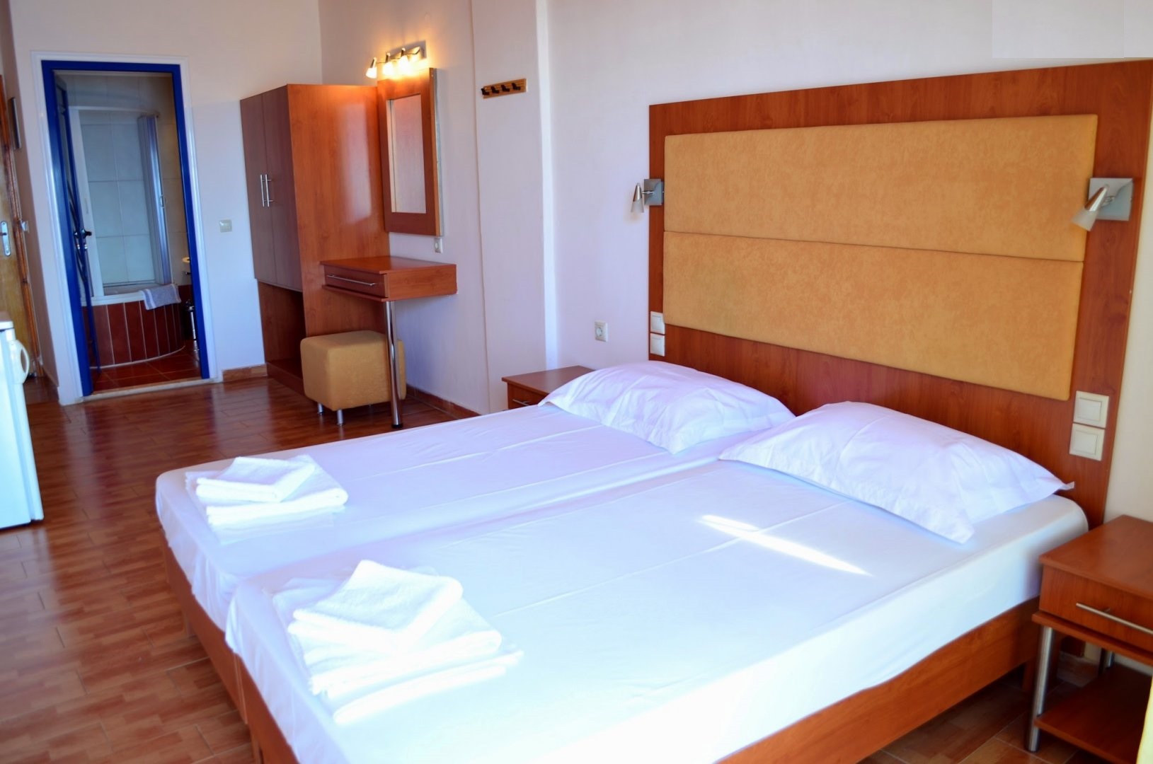 Minos Hotel is located on a privileged spot, just 100 meters from the beach or 100 meters from the lively “Agora – Taverna” street and the port, everything is just a few steps away.