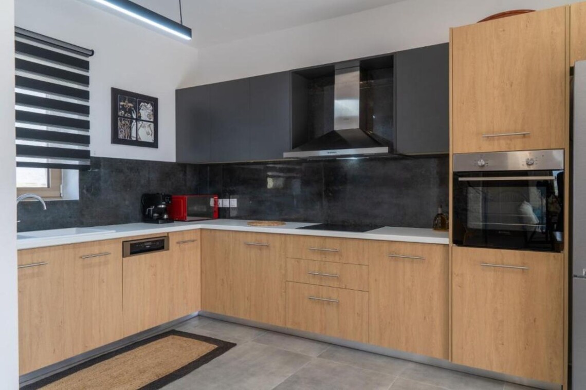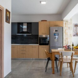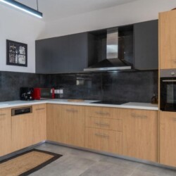 On the ground floor, you’ll find a bright open-plan kitchen and living area. The space includes a comfortable lounge, a dining area, and an elegantly designed kitchen fully equipped with all essential appliances. A bathroom with a shower, toilet, and washing machine is also located on this level.