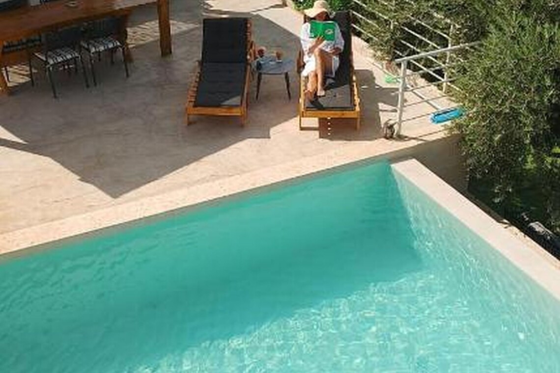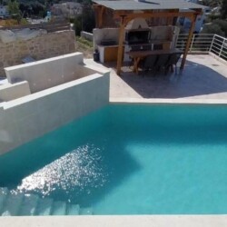 This villa features three spacious bedrooms and comfortably accommodates up to six guests. Built on two levels and set in an elevated position, it offers beautiful mountain views from every room.
