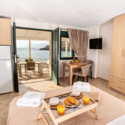 Wake up to the sound of the waves and stunning views of Matala’s famous caves. This bright and airy 22 m² studio is located right on the beach, offering a unique blend of comfort, charm, and unbeatable location. The studio features: