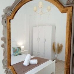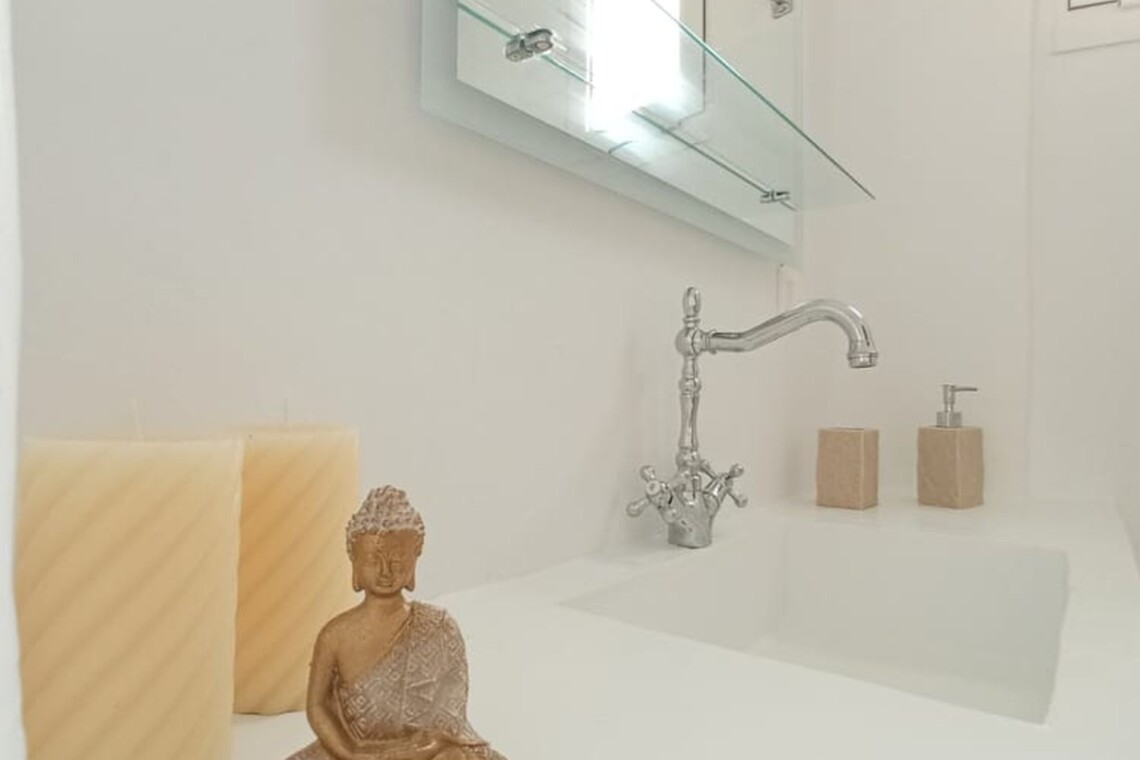 Ascending the outdoor steps to the first floor, you enter the studio, a stylish space boasting a kitchenette for added convenience. The modern bathroom exudes luxury. A second double bed promises comfort and privacy.