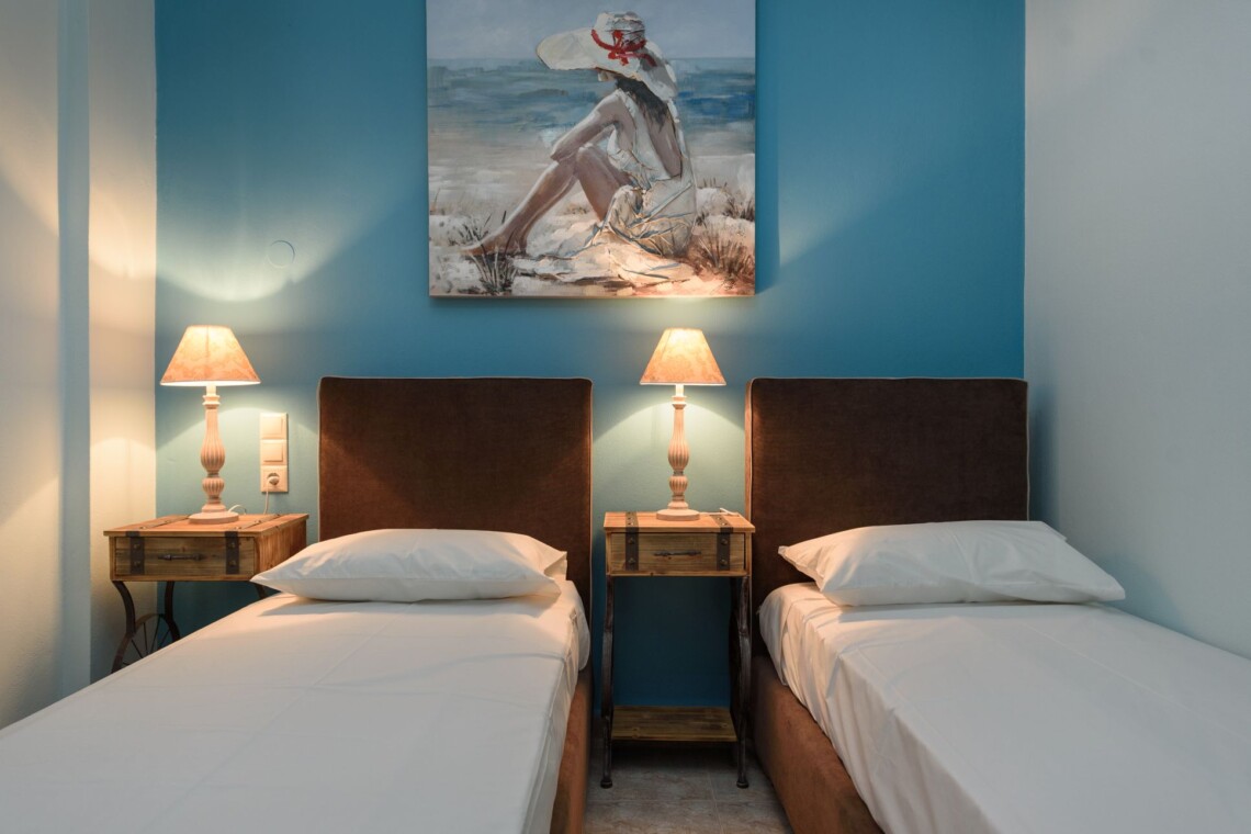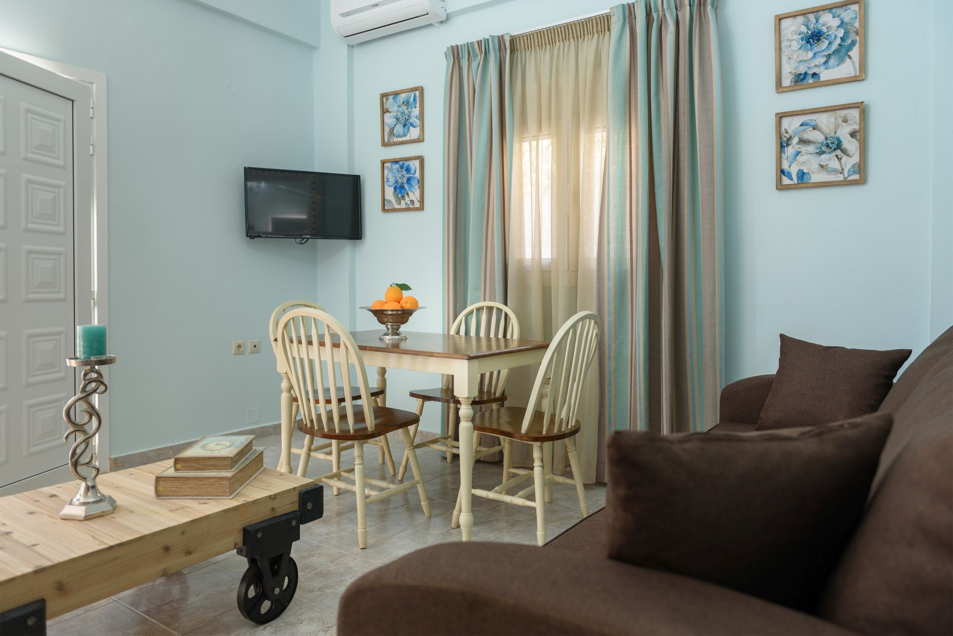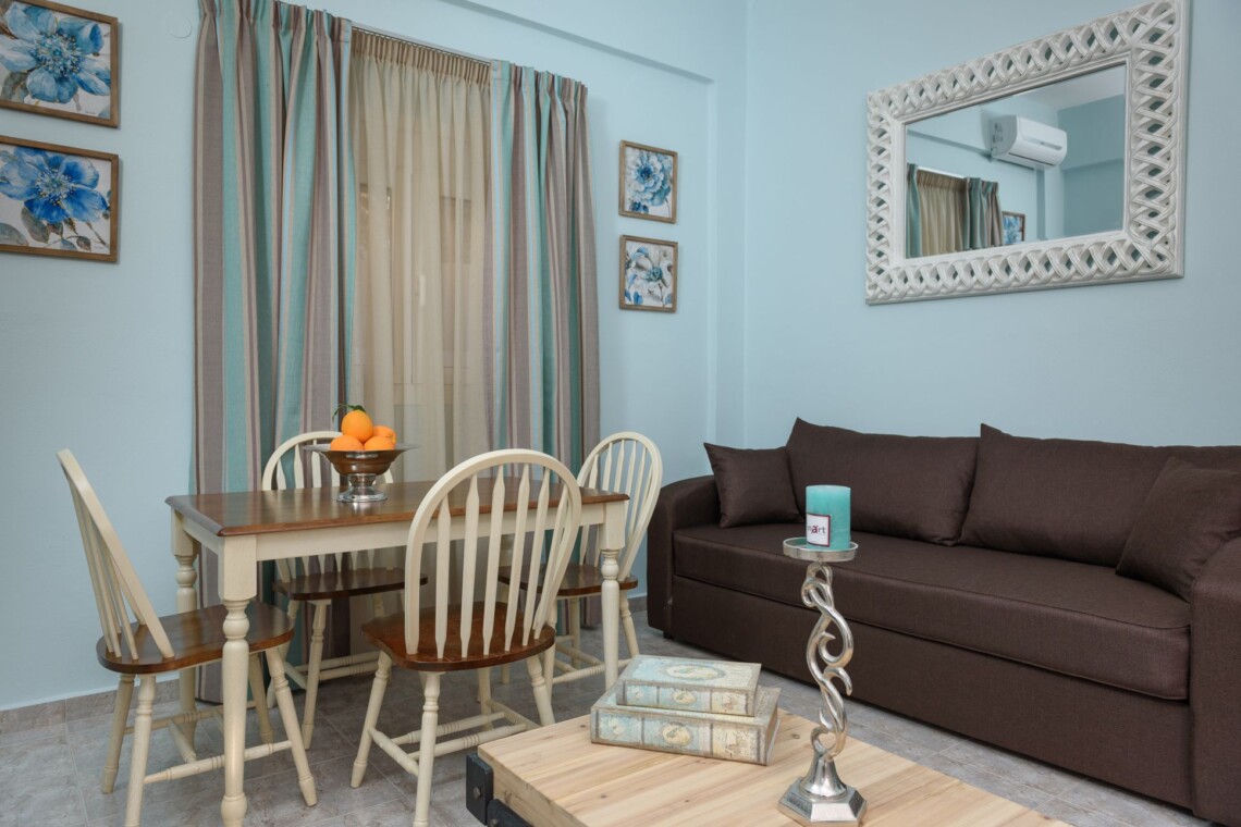 They are all beautifully decorated with handmade furniture, crafted in the Cretan traditional style mixed with modern elements. All apartments come with a fully equipped kitchen with microwave, refrigerator, coffee maker as well as necessary kitchen utensils. Each one has his own private bathroom with shower, hair dryer, towels and washing machine. There is Wi-Fi coverage in each apartment. The individually controlled air conditioning and the smart TV are in the living area.