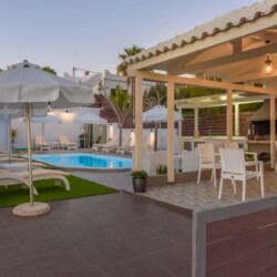 Spyros Apartments with pool is the perfect holiday accommodation for couples, families and groups. The entity consists of 5 different apartments and provides accommodation for up to 20 people in total. The apartments are located on a tranquil part of the village in third line. It is an easy walk to the beach and the center of the village.