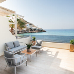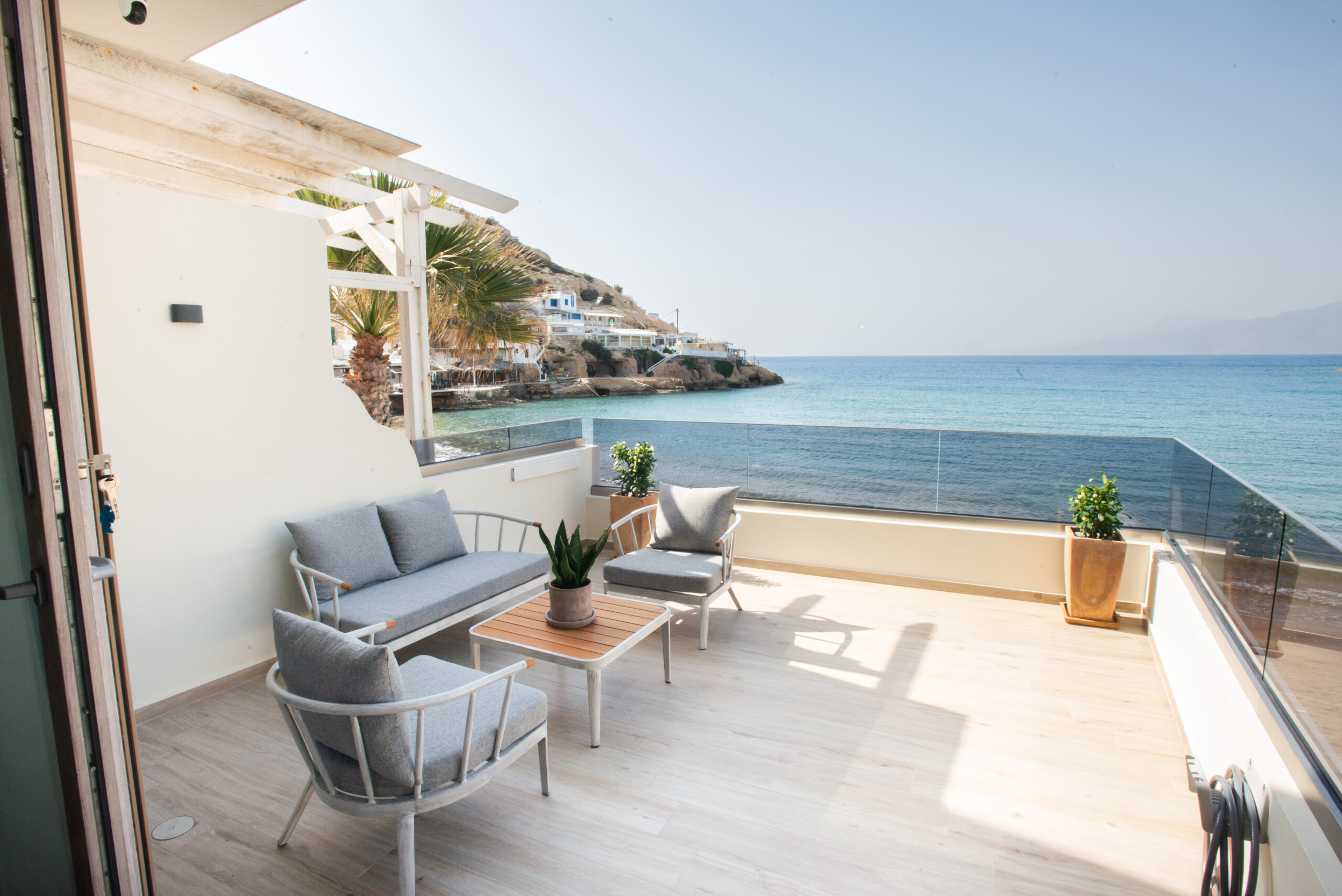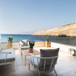 Private terrace with sea view at beachfront studio in Matala, Crete